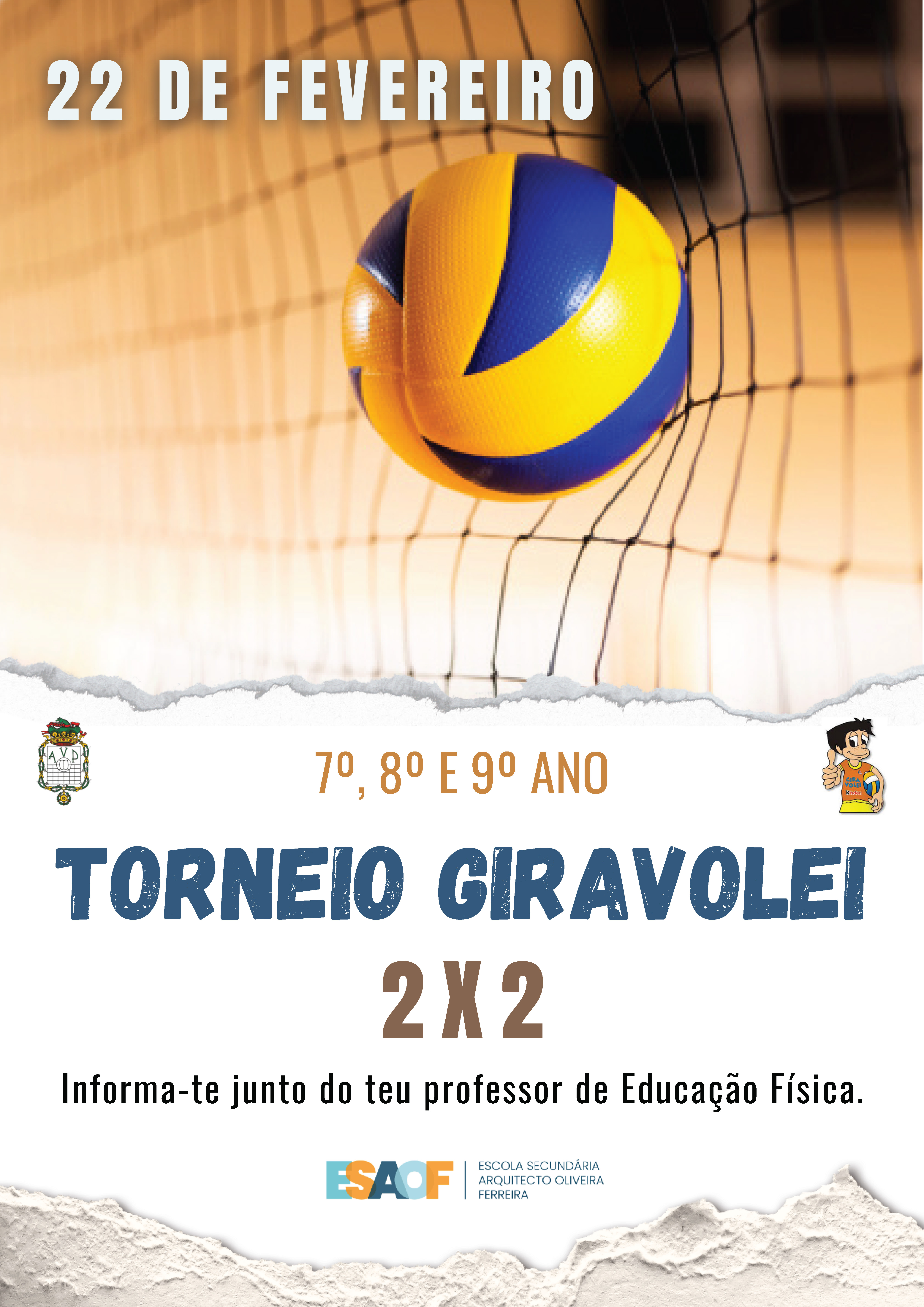 Decorreu, a 22 de fevereiro, na ESAOF mais um Torneio GiraVolei, organizado e dinamizado pela escola, com a colaboração da Associação de Voleibol do Porto. Uma manhã repleta de emoções, destinada aos mais jovens (3º ciclo), que culminou com a entrega de prémios aos primeiros classificados. Parabéns a todos os participantes.