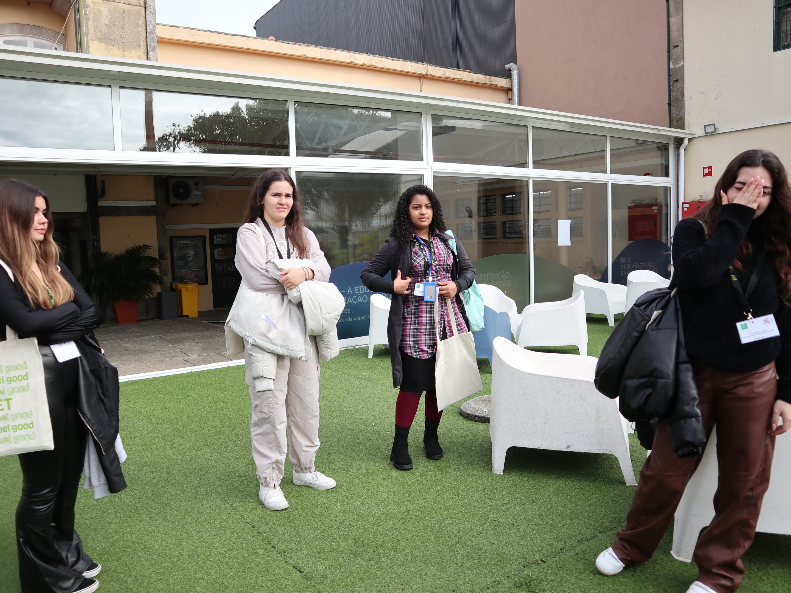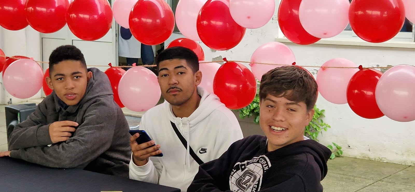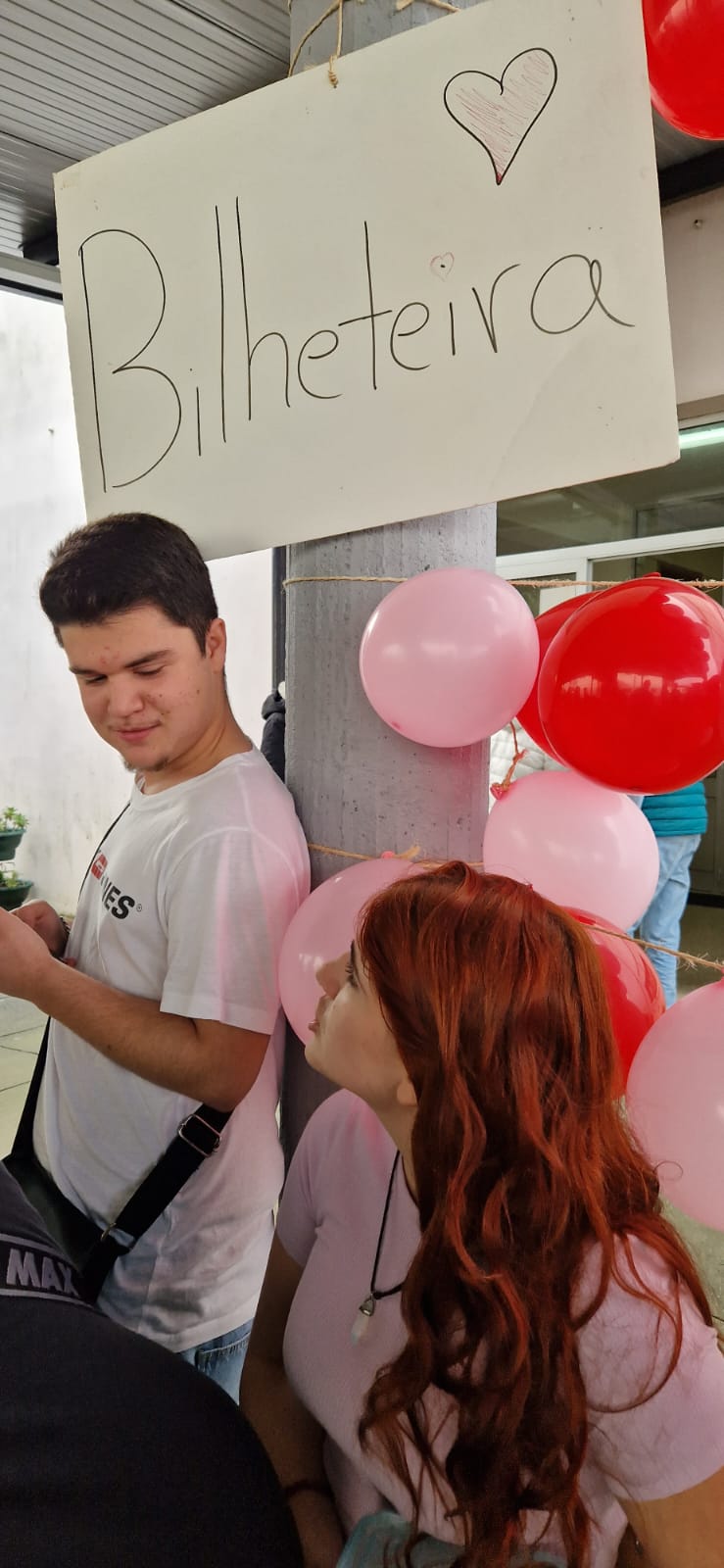 A turma do 10º C, no exterior, montou um espaço para apresentação do concurso "A mais bela cantada de amor" que tem como prémio um almoço, para duas pessoas, servido pelo Restaurante Pedagógico da ESAOF.