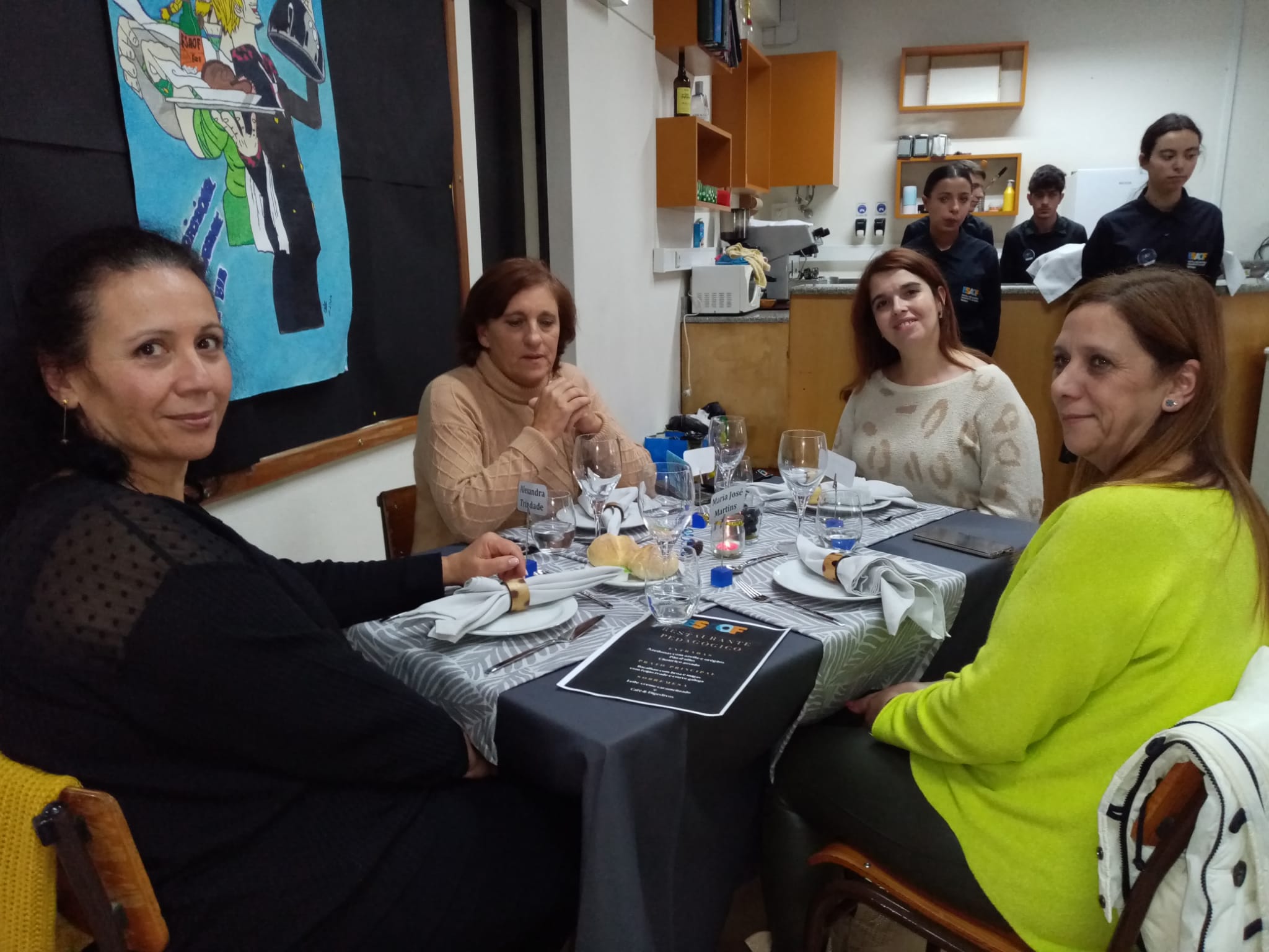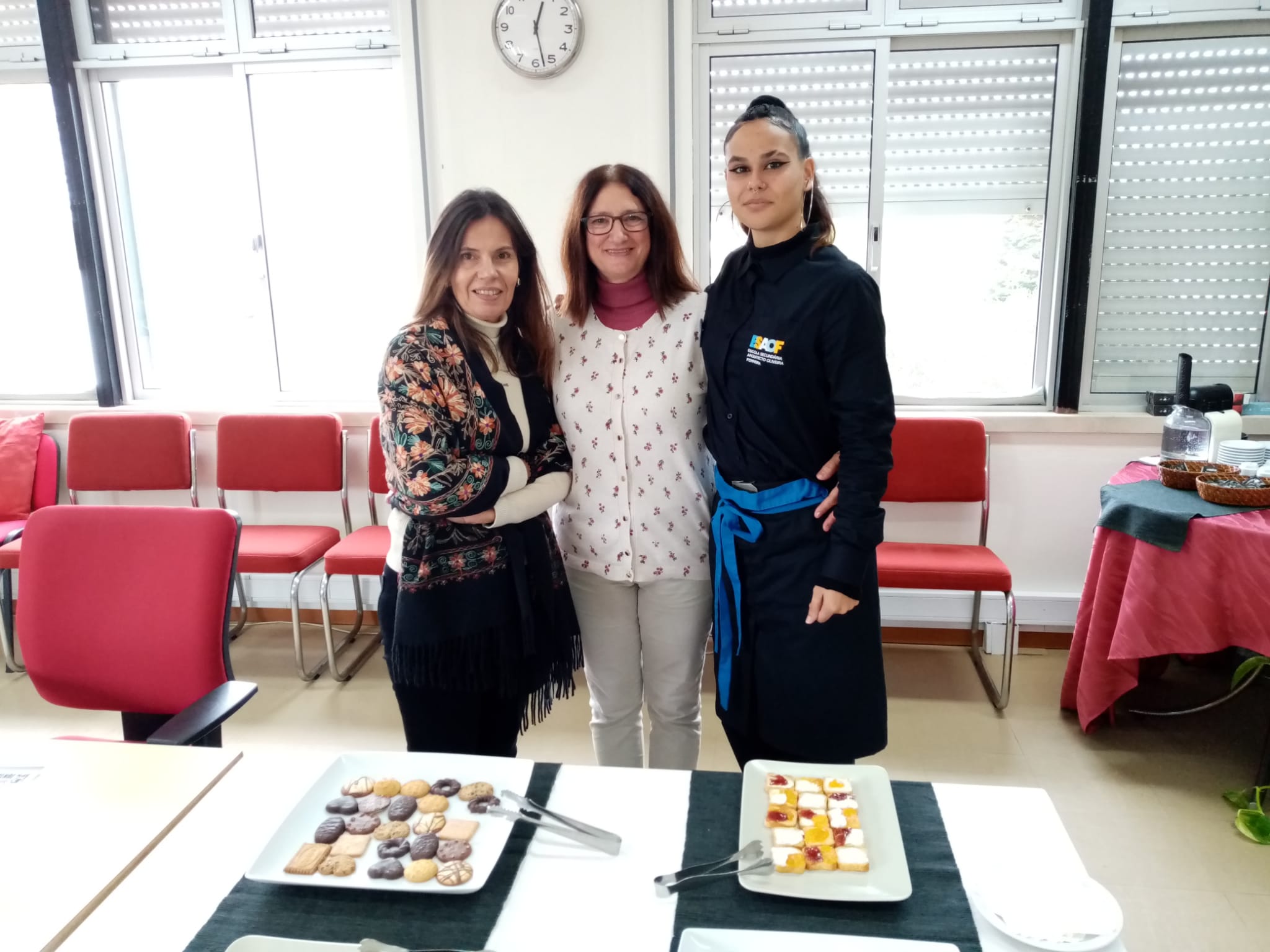 No dia 29 estivemos de novo juntos a almoçar... Mas desta vez tivemos a simpática companhia das Colegas da nossa escola vizinha, EB 2/3 Sophia de Mello Breyner, e dos alunos da nossa Associação de Estudantes. Um momento muito agradável, para degustar os petiscos propostos pela equipa da Restauração e para pôr as conversas em dia. A repetir! |