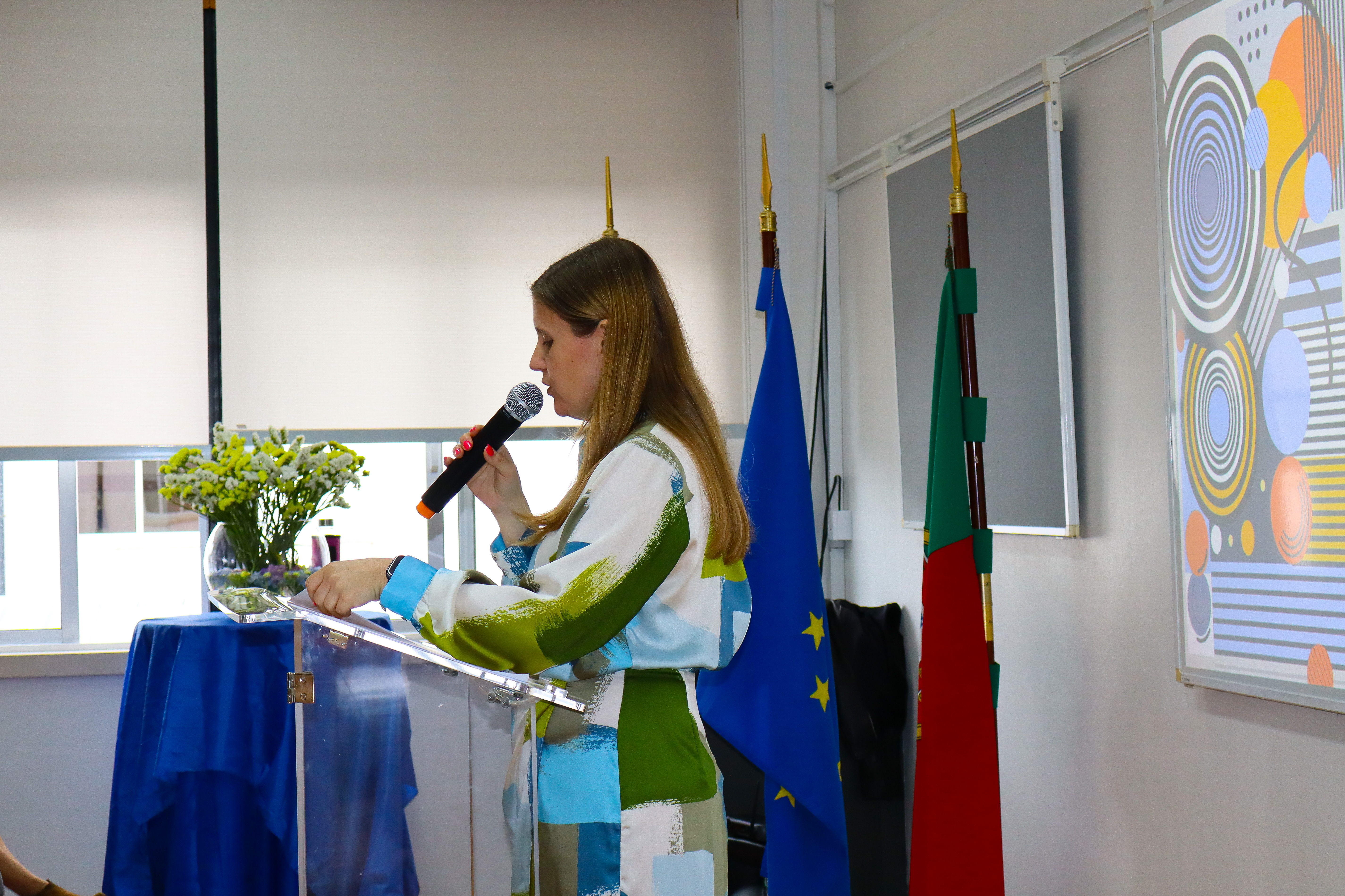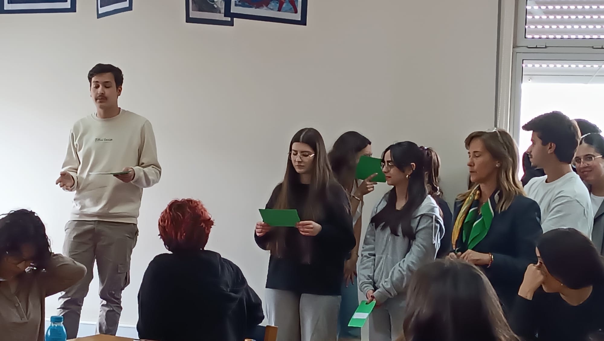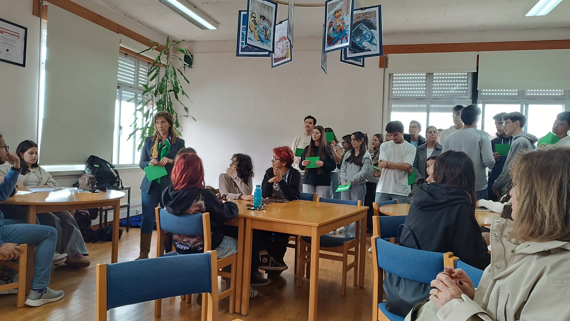 No âmbito do estudo do texto poético, os alunos do 12.º ano, da professora Lourdes Soares, turmas A e B, apresentaram na Biblioteca a atividade “Em português, dizemos “, mas “Em poesia, diz-se”. Uma partilha riquíssima de ideias que dizemos em linguagem corrente e a sua “tradução” para linguagem poética. Assistiram os colegas do 11.º A e B e vários professores.
