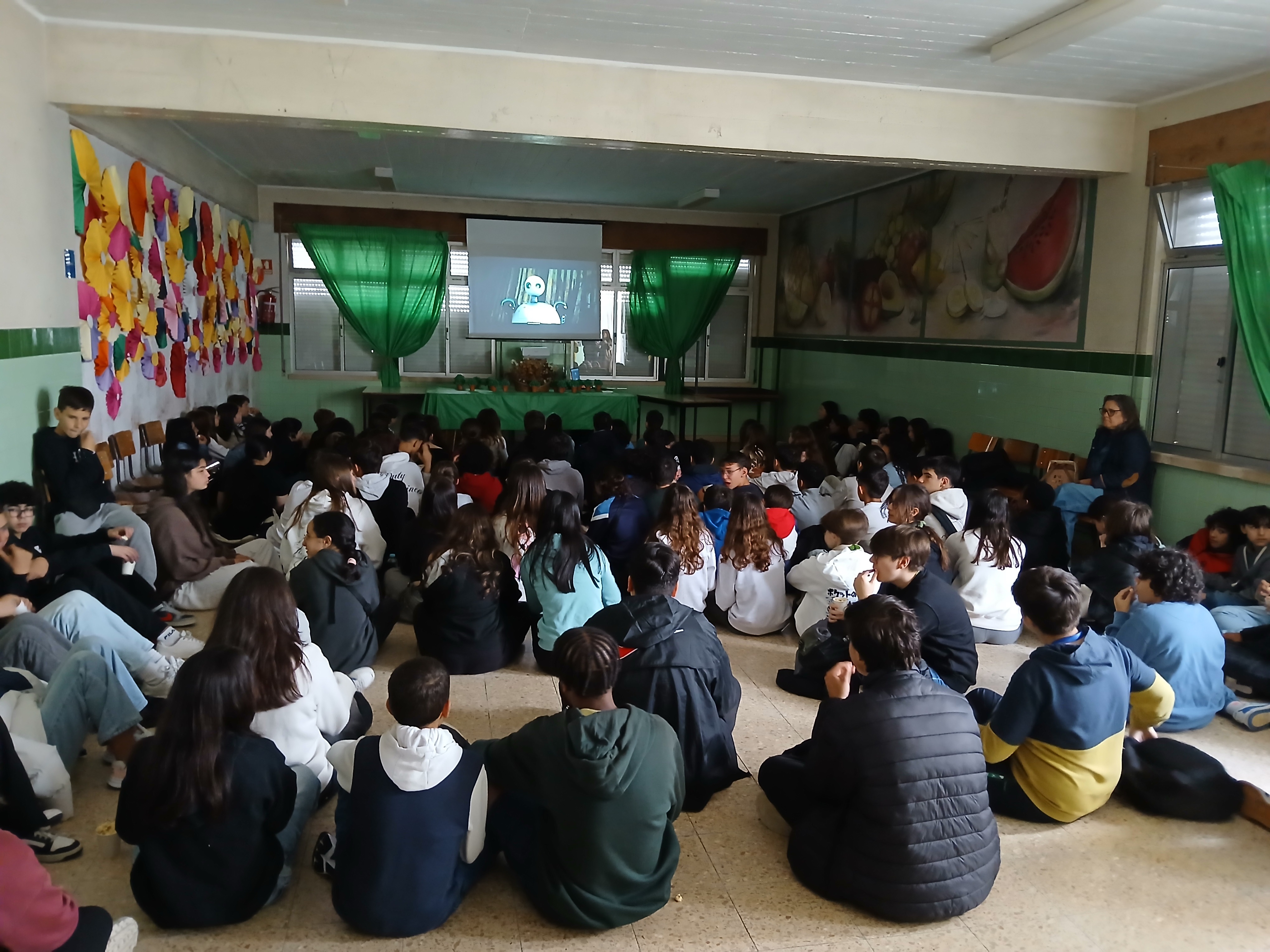 Os alunos do terceiro ciclo assistiram ao filme "O Robot Selvagem", uma emocionante história sobre amizade, coragem, e a descoberta do nosso lugar no mundo. No final, um grupo de alunos demonstrou o verdadeiro espírito de entreajuda e voluntariou-se para limpar e organizar o espaço.
