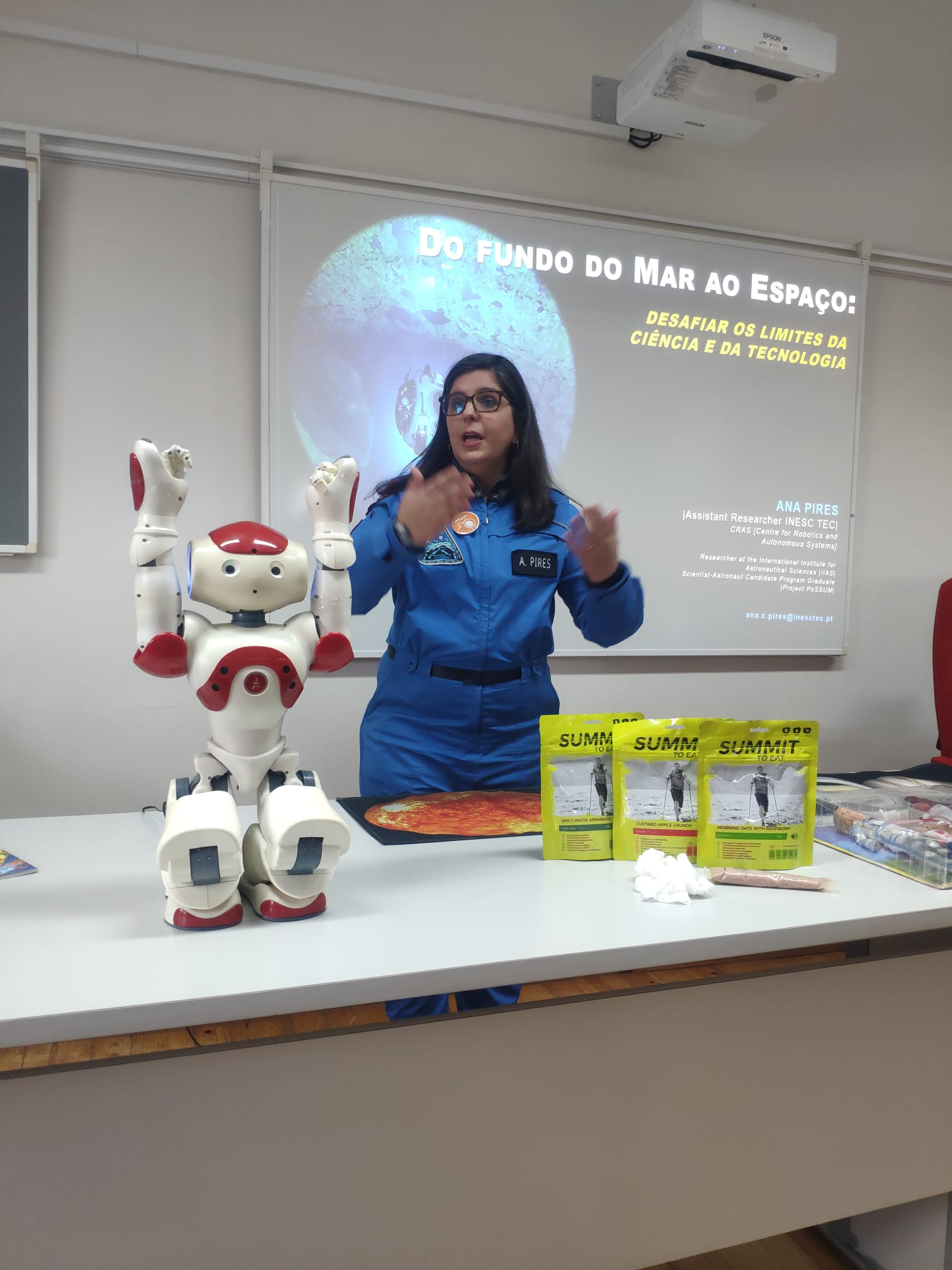 No dia 24 de janeiro, os alunos do 7 Ano e as turmas do 10A e 11A, assistiram, com entusiasmo, a uma palestra com a Astronauta, Ana Pires, cujo tema foi: "Do fundo do Mar ao Espaço, desafiar os limites da Ciência e da Tecnologia".