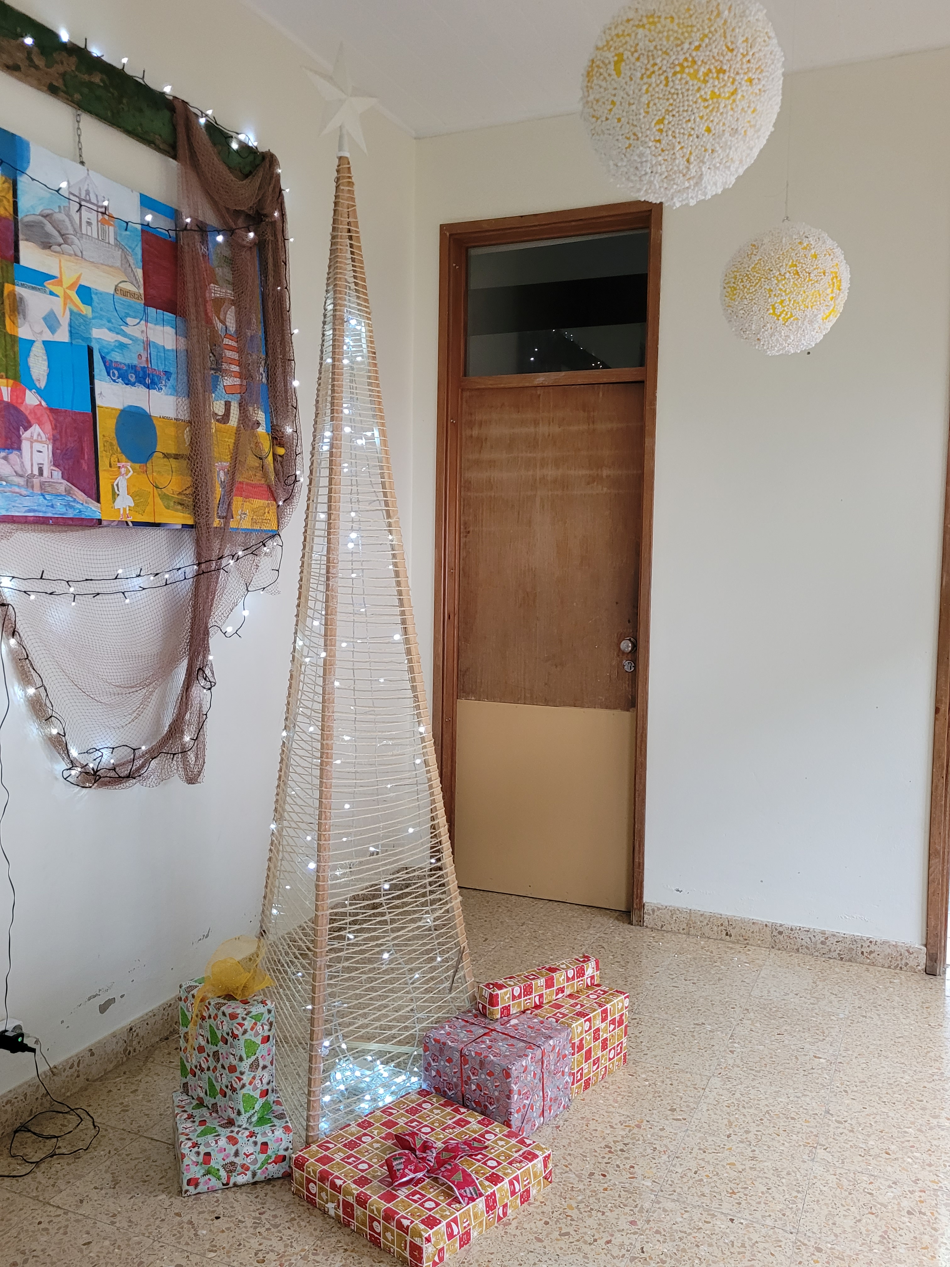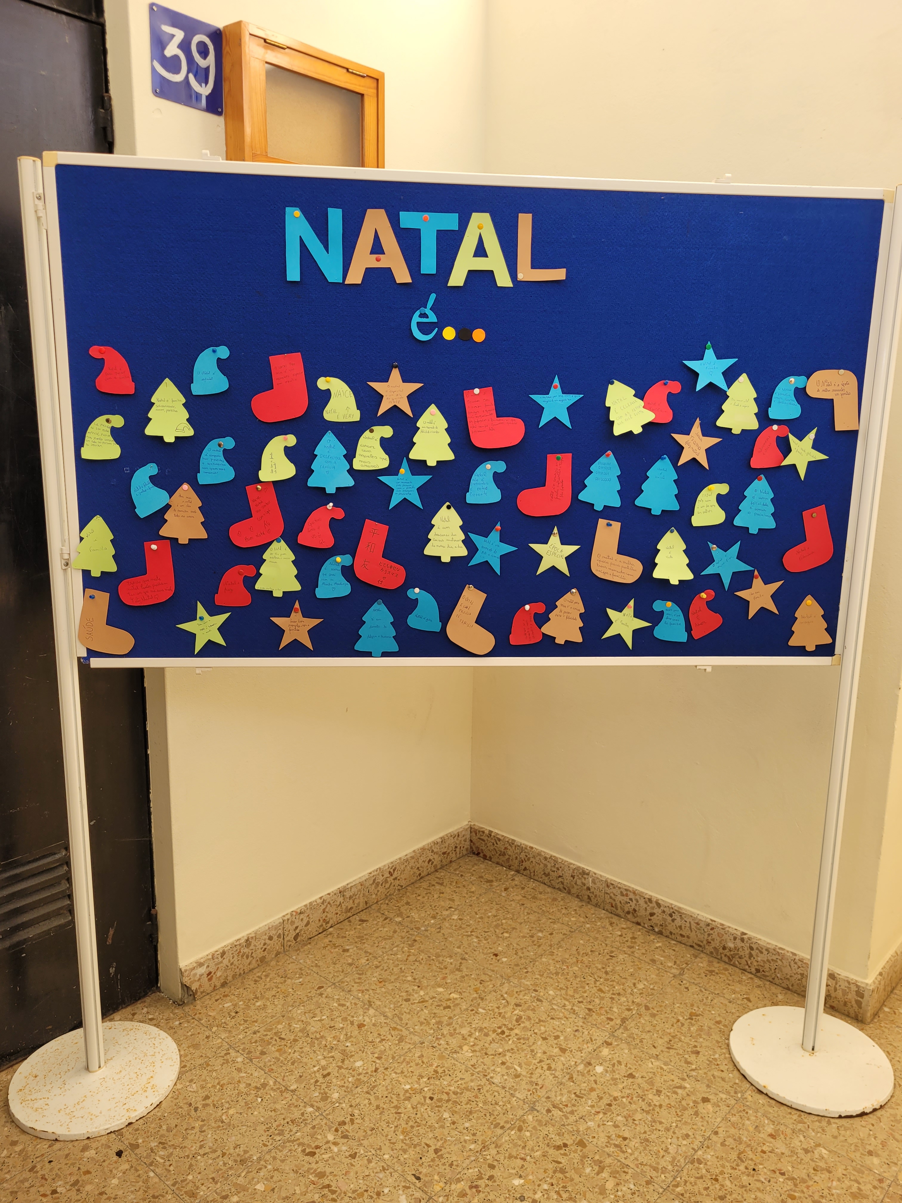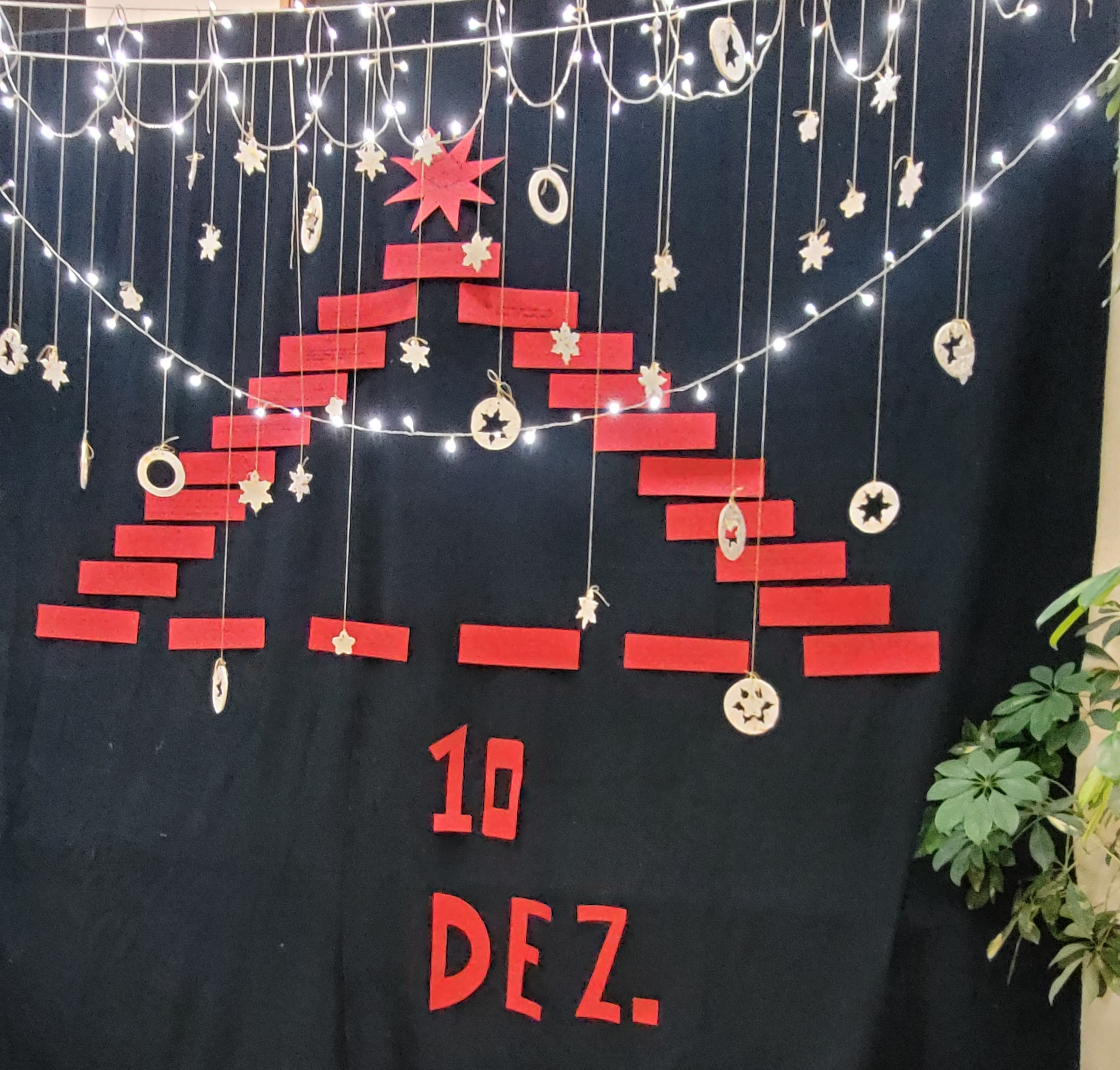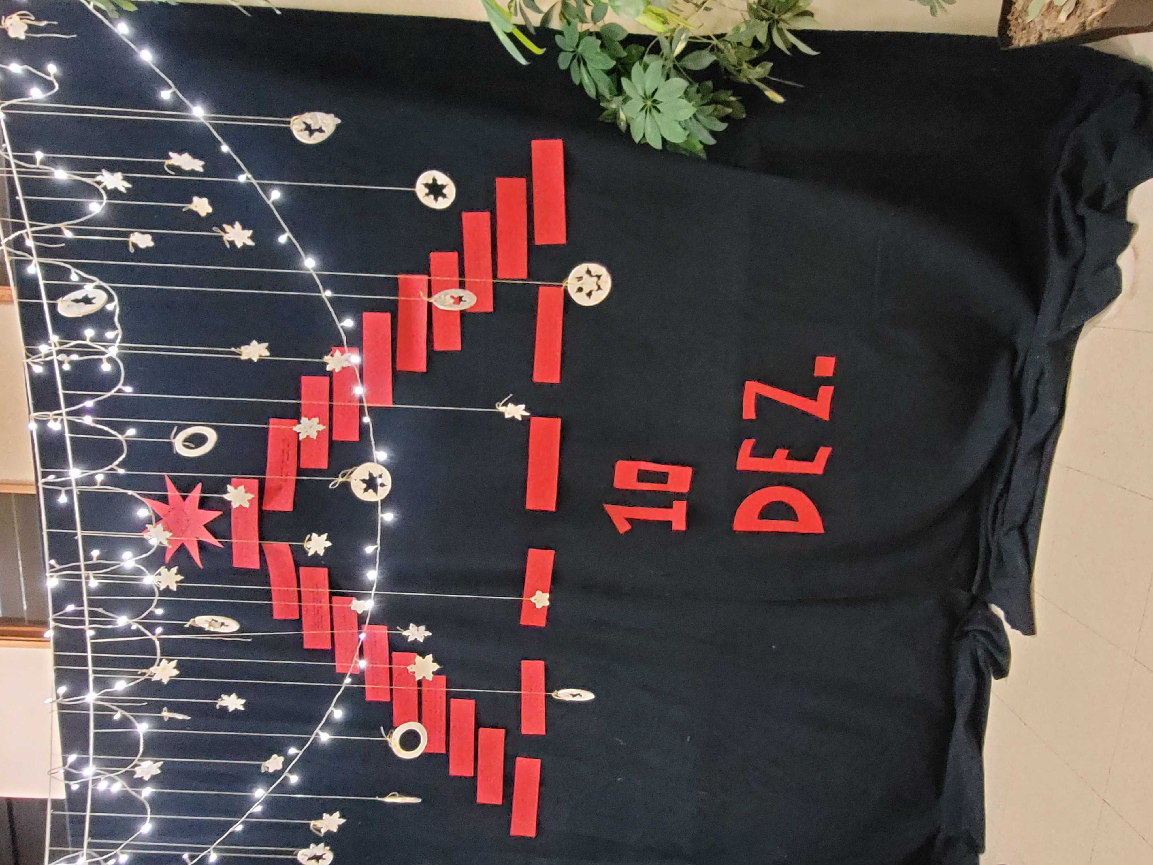 Os artigos estão lá, a vermelho, num pano fundo preto porque neste Natal ainda há muitos destes direitos que não são respeitados, em muitas partes do mundo.