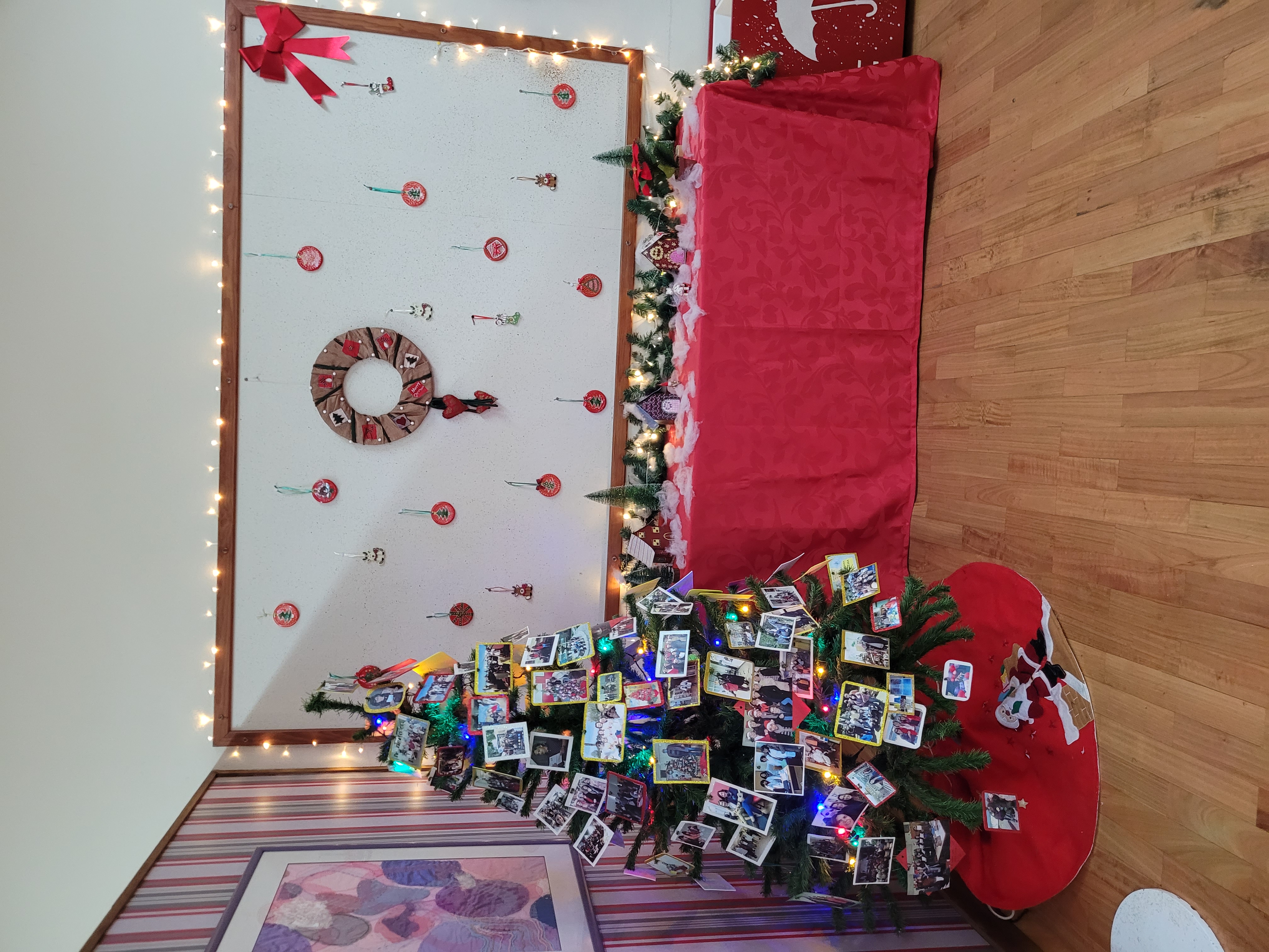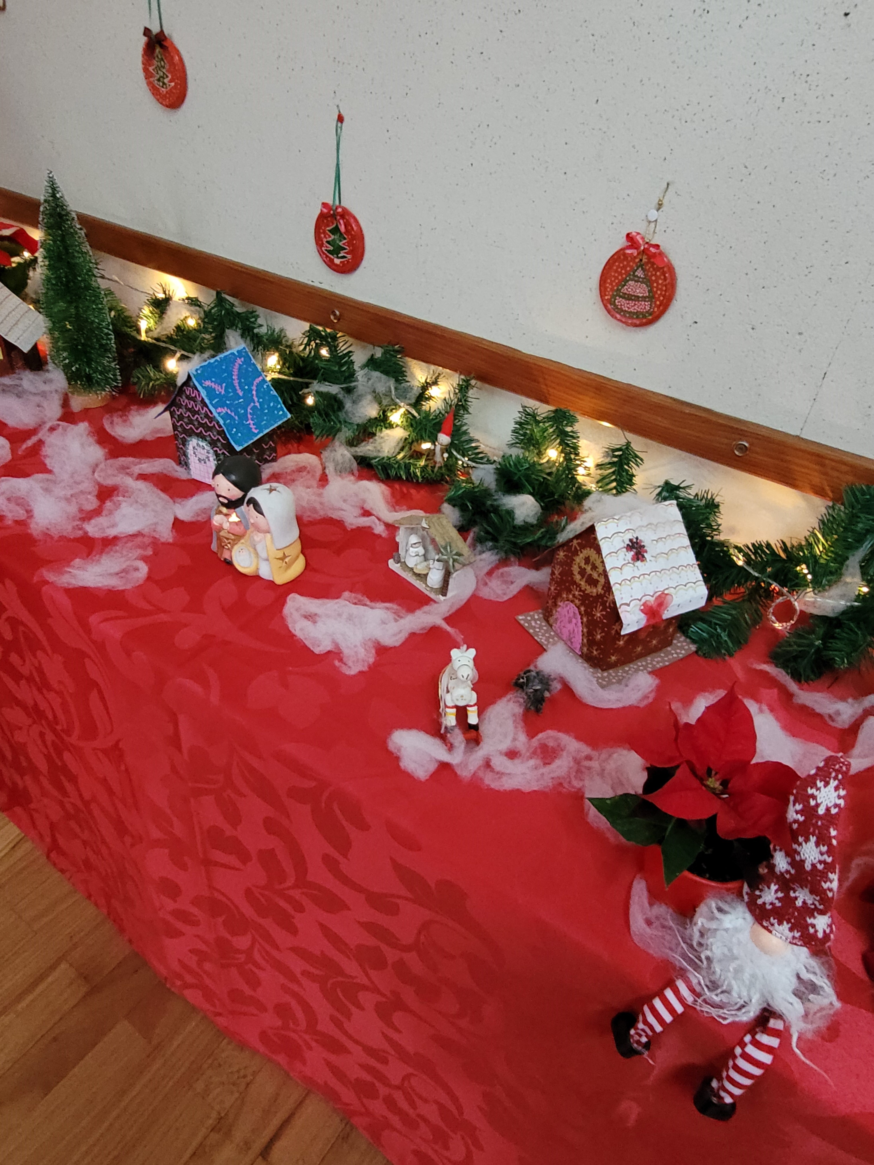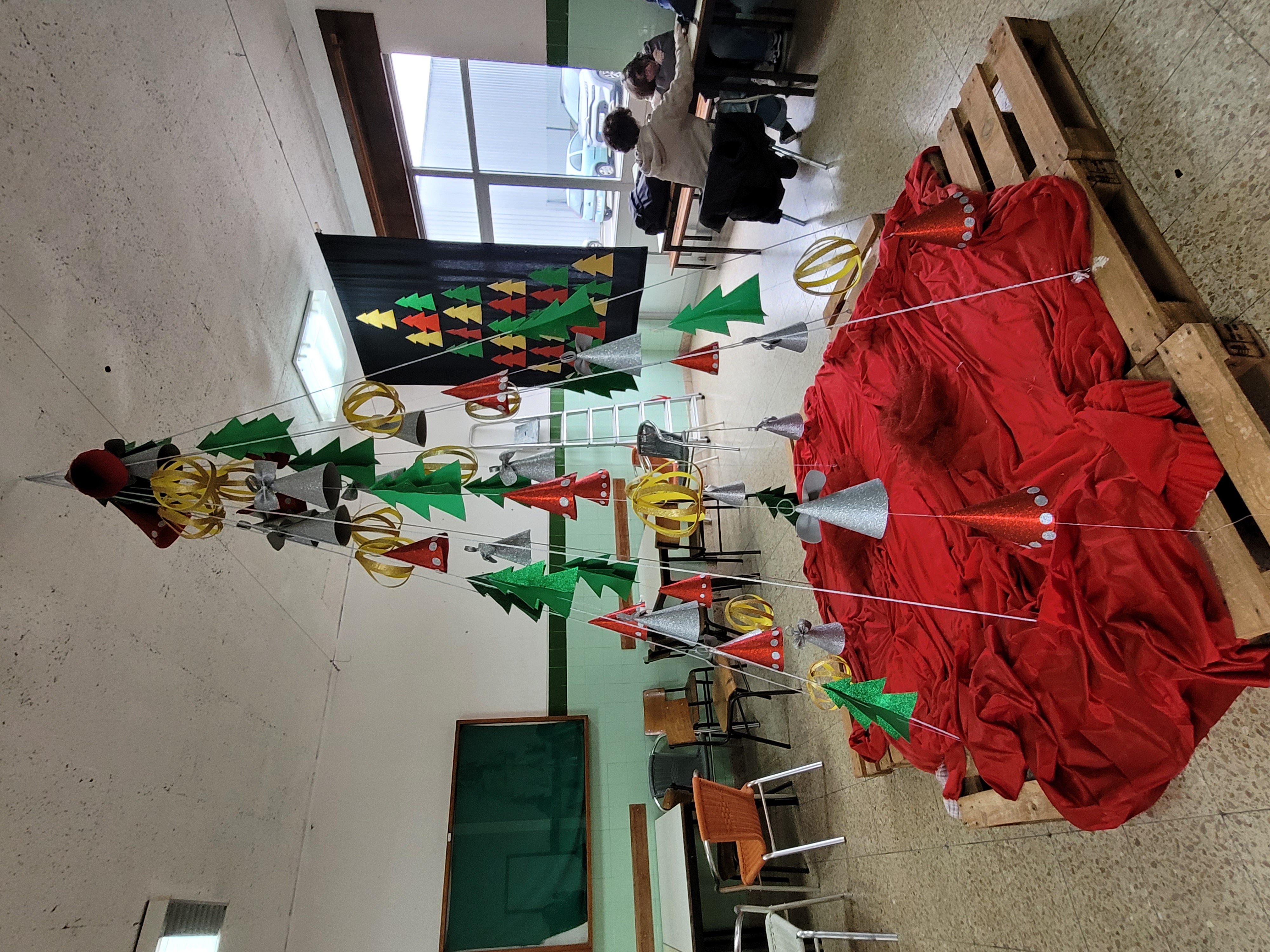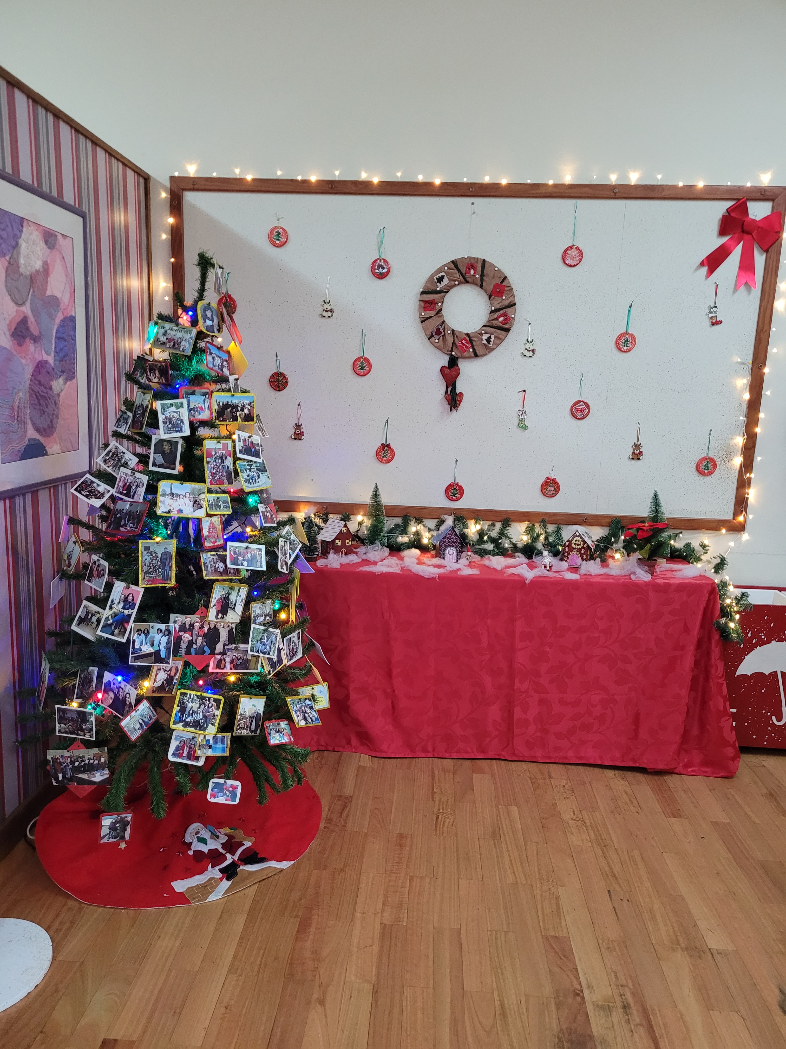 Os artigos estão lá, a vermelho, num pano fundo preto porque neste Natal ainda há muitos destes direitos que não são respeitados, em muitas partes do mundo.