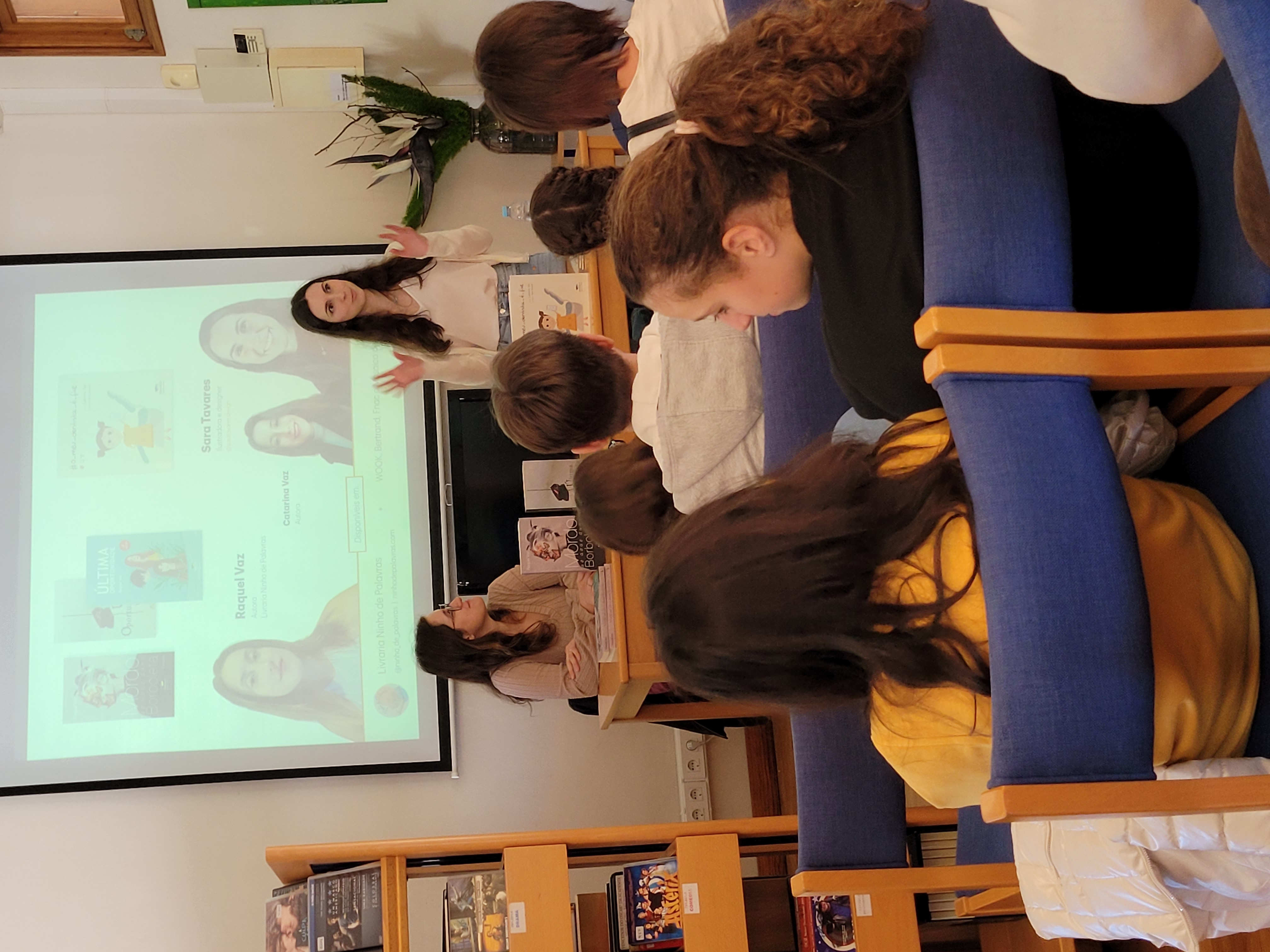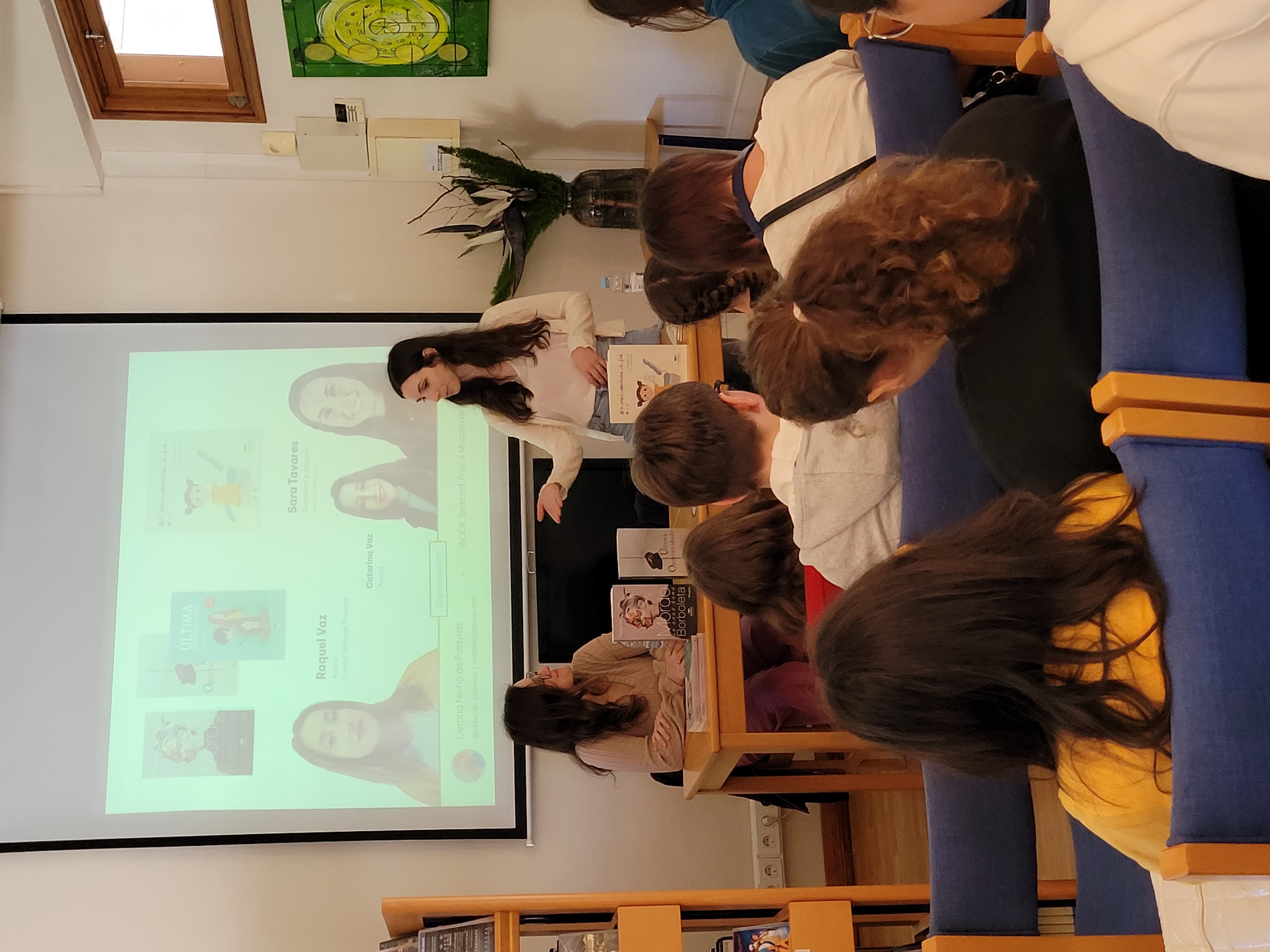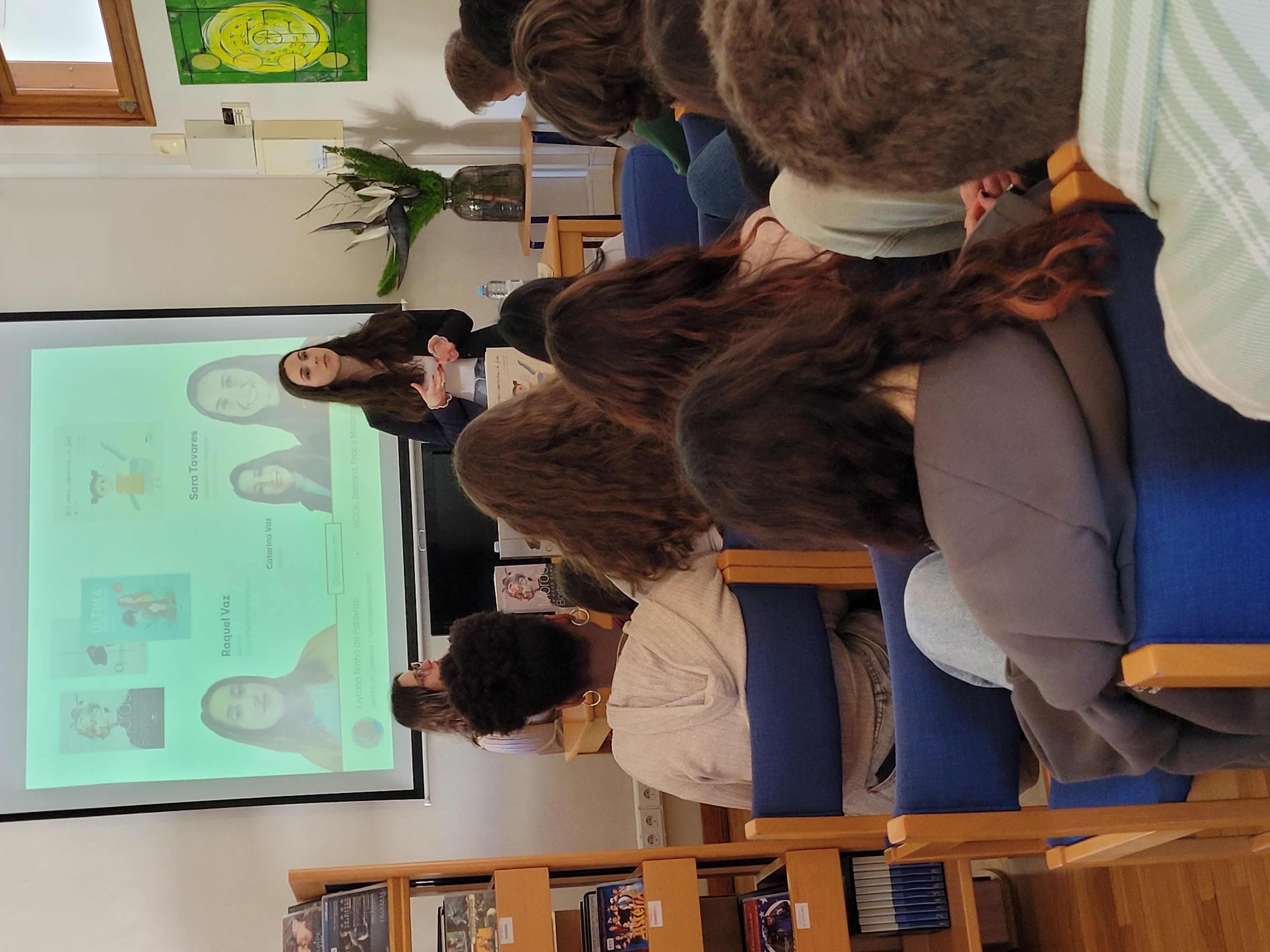 Estas partilharam connosco os respetivos percursos académicos e experiências profissionais polivalentes. Os alunos sentiram-se cativados pelo entusiasmo que ambas transmitiram e inspirados a não deixar de explorar os seus talentos criativos, porque, como nos mostraram as autoras, desde que haja motivação, tudo é possível e o mais importante é sentirmo-nos realizados!!!