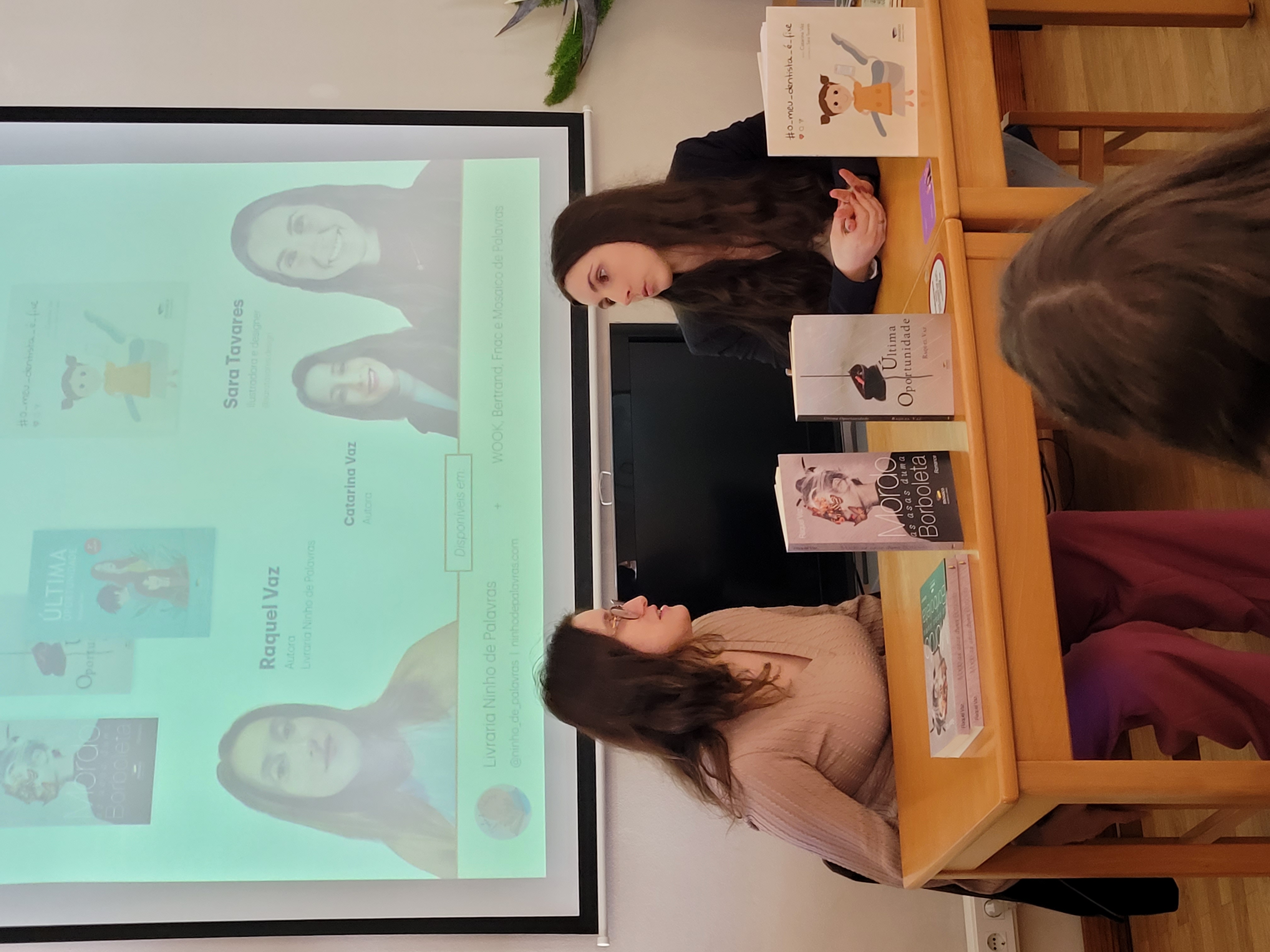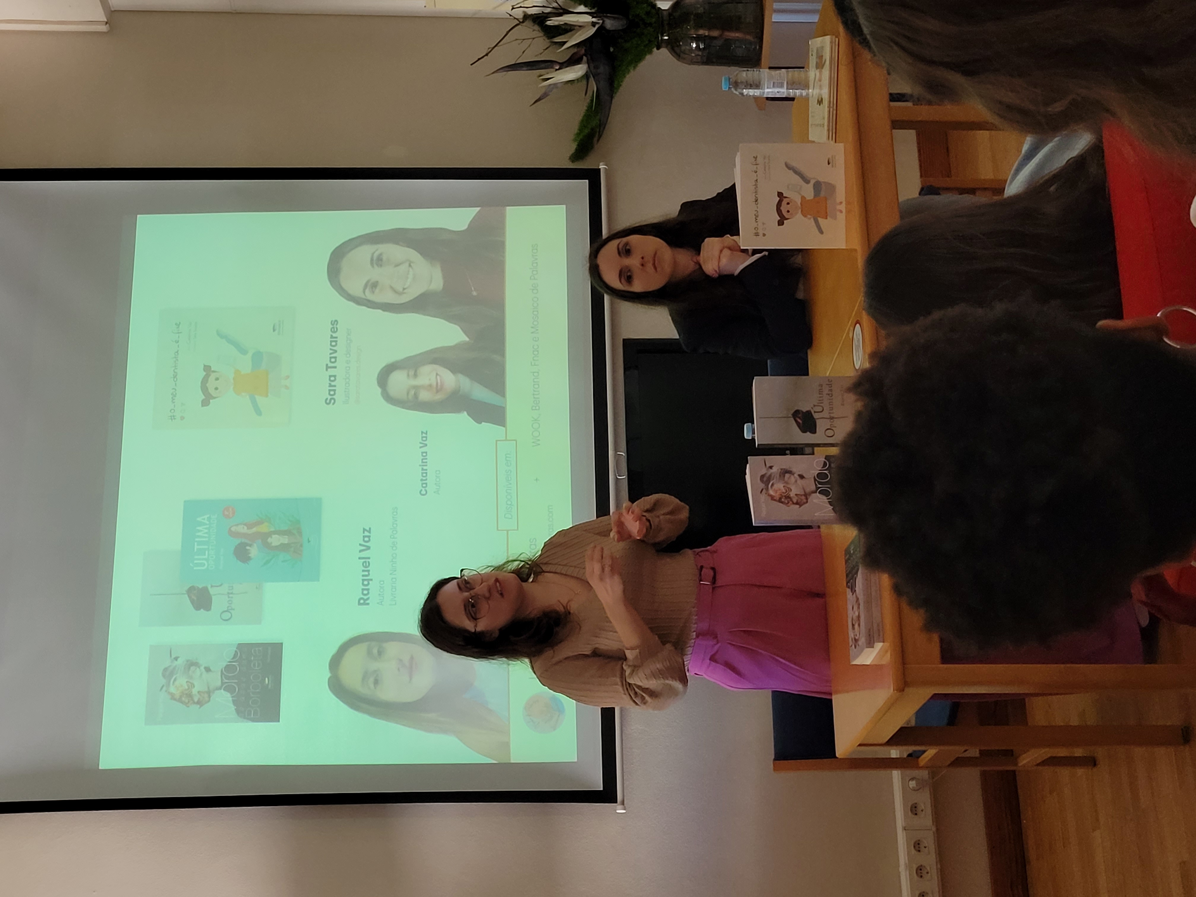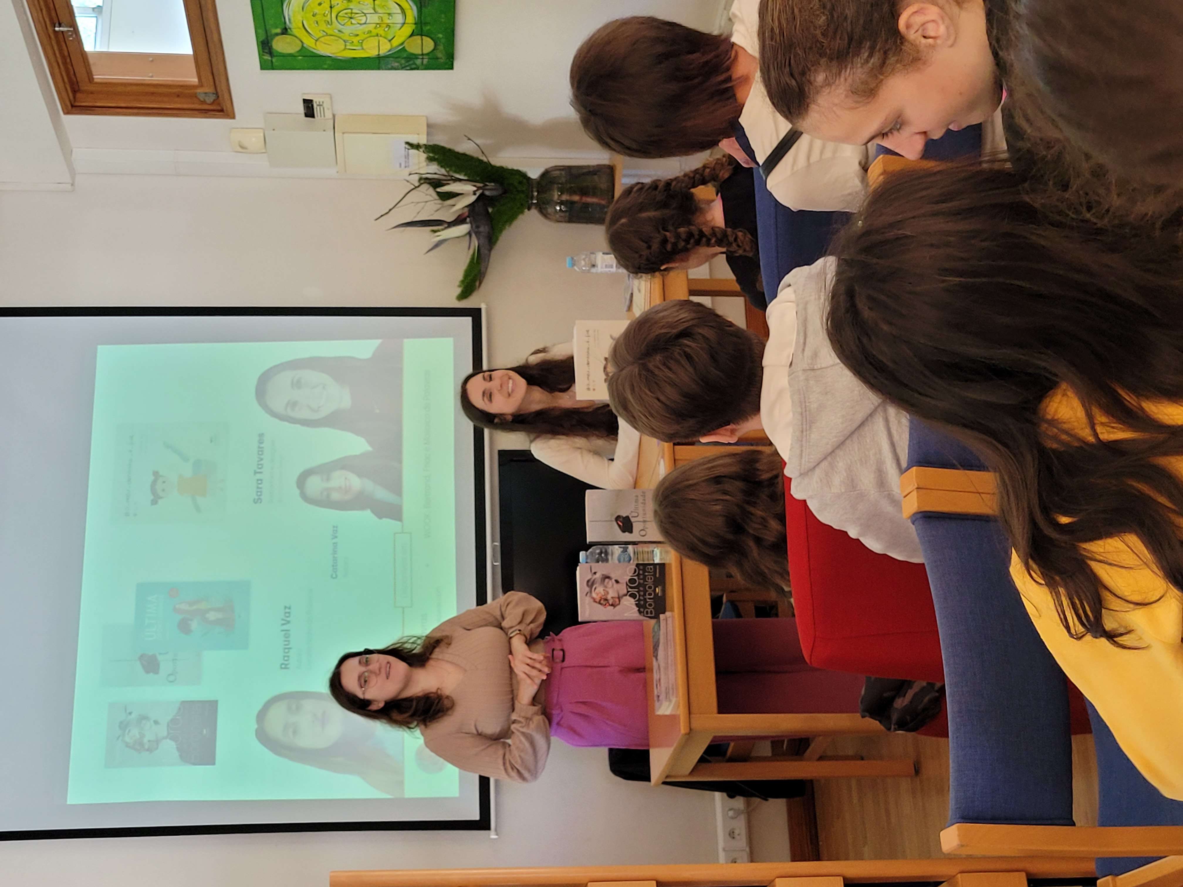Estas partilharam connosco os respetivos percursos académicos e experiências profissionais polivalentes. Os alunos sentiram-se cativados pelo entusiasmo que ambas transmitiram e inspirados a não deixar de explorar os seus talentos criativos, porque, como nos mostraram as autoras, desde que haja motivação, tudo é possível e o mais importante é sentirmo-nos realizados!!!