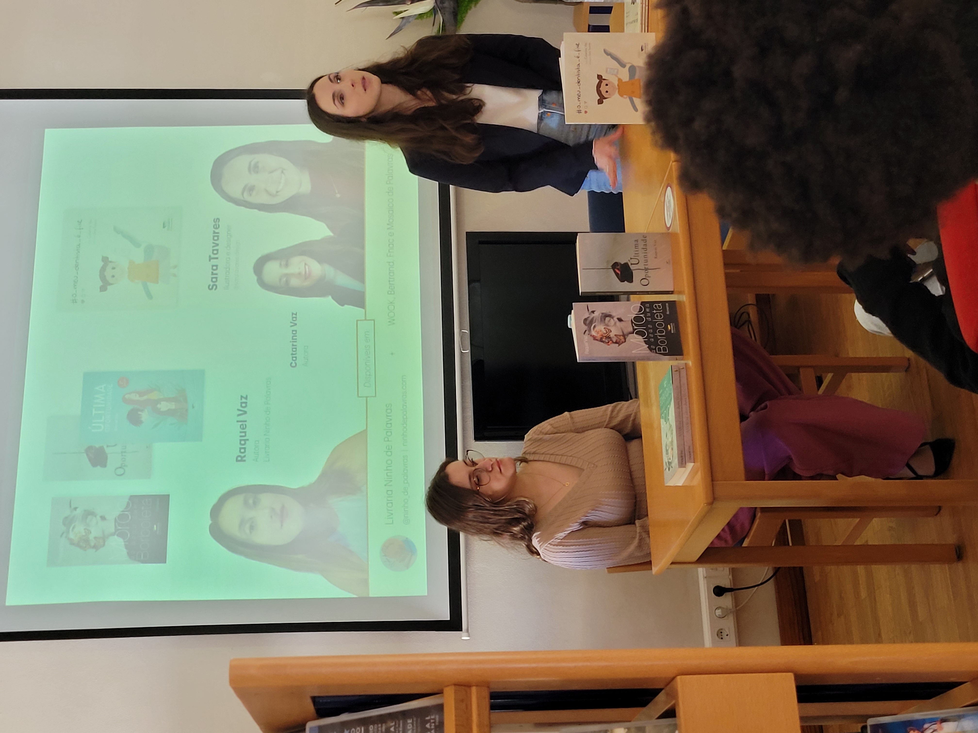 No âmbito da Celebração do Dia Mundial da Língua Portuguesa, cuja data se assinala a 5 de maio, a Biblioteca da ESAOF recebeu duas jovens convidadas: a autora Raquel Vaz e a ilustradora Sara Tavares (nossa ex-aluna).