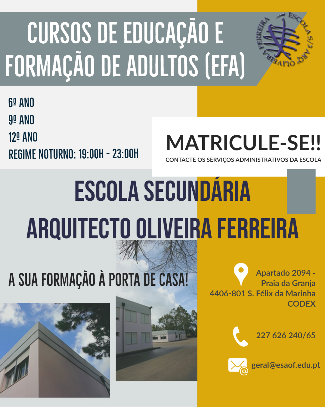 Estão abertas as inscrições para os Cursos EFA Escolar. Não tem o 6º ano? Não tem o 9º ano? Não tem o 12º ano? Não perca tempo... Inscreva-se já!! Divulgue!! PARTILHE!!