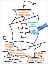 Vai realizar-se, na nossa Escola, no dia 17 e 19 de maio, uma palestra sobre as descobertas e as viagens marítimas que terá como comunicador o nosso Diretor, Dr. Luciano Ribeiro.